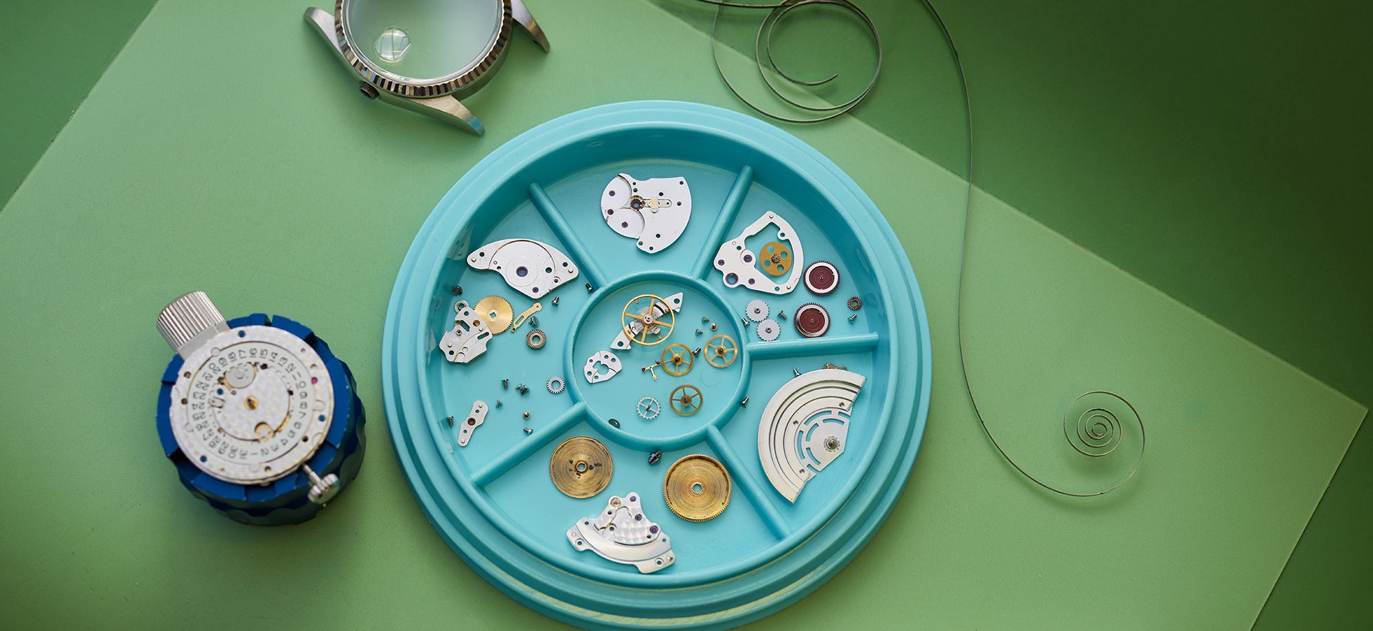 A watch that has been working for many years needs a comprehensive overhaul once in a while. This involves disassembling the watch into its individual parts. All parts are thoroughly cleaned, replaced with original parts if necessary, then reassembled and oiled. A meticulous function check and a fine-tuning complete this service.